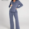The sweatshirt ensembles are designed with a sporty polo collar, V-neck and asymmetric hem; the high-waisted drawstring pants are made with a loose fit that reveals wide legs; The asymmetric hem offers more coverage on the back and is 4-way stretch for ease of movement.