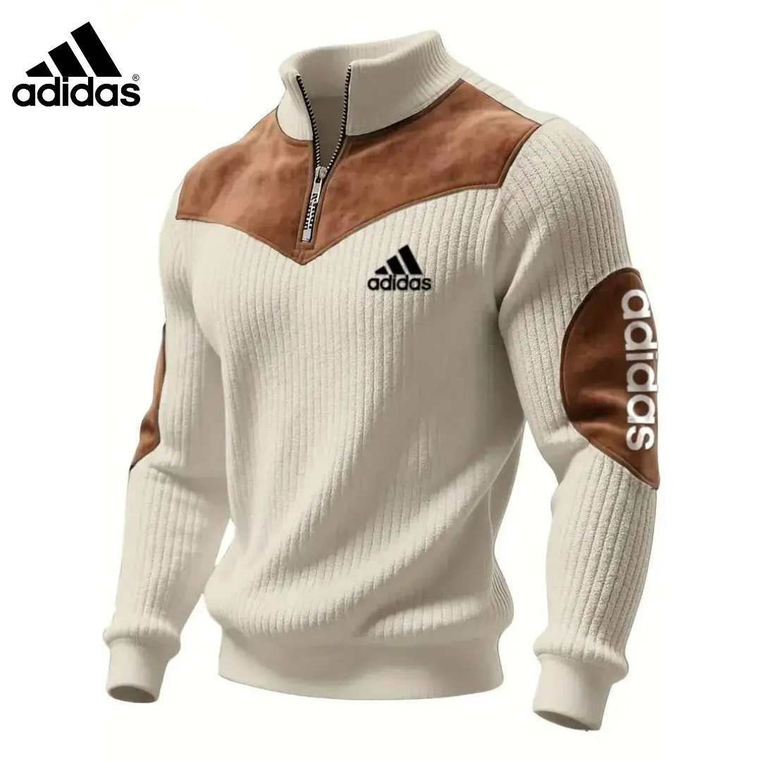 The Adidas – New Half-Zip Sweater blends athletic heritage with a refined everyday look. Featuring a sleek ribbed texture and a bold contrast panel across the chest and shoulders, this sweater delivers a confident style that stands out without trying too hard. The iconic Adidas logo adds a signature touch, making it perfect for both casual wear and sporty outfits.